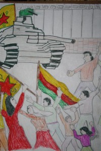 Fuente: http://es.hawarnewsagency.com/a-sus-13-anos-dibuja-el-sufrimiento-del-pueblo-kurdo/