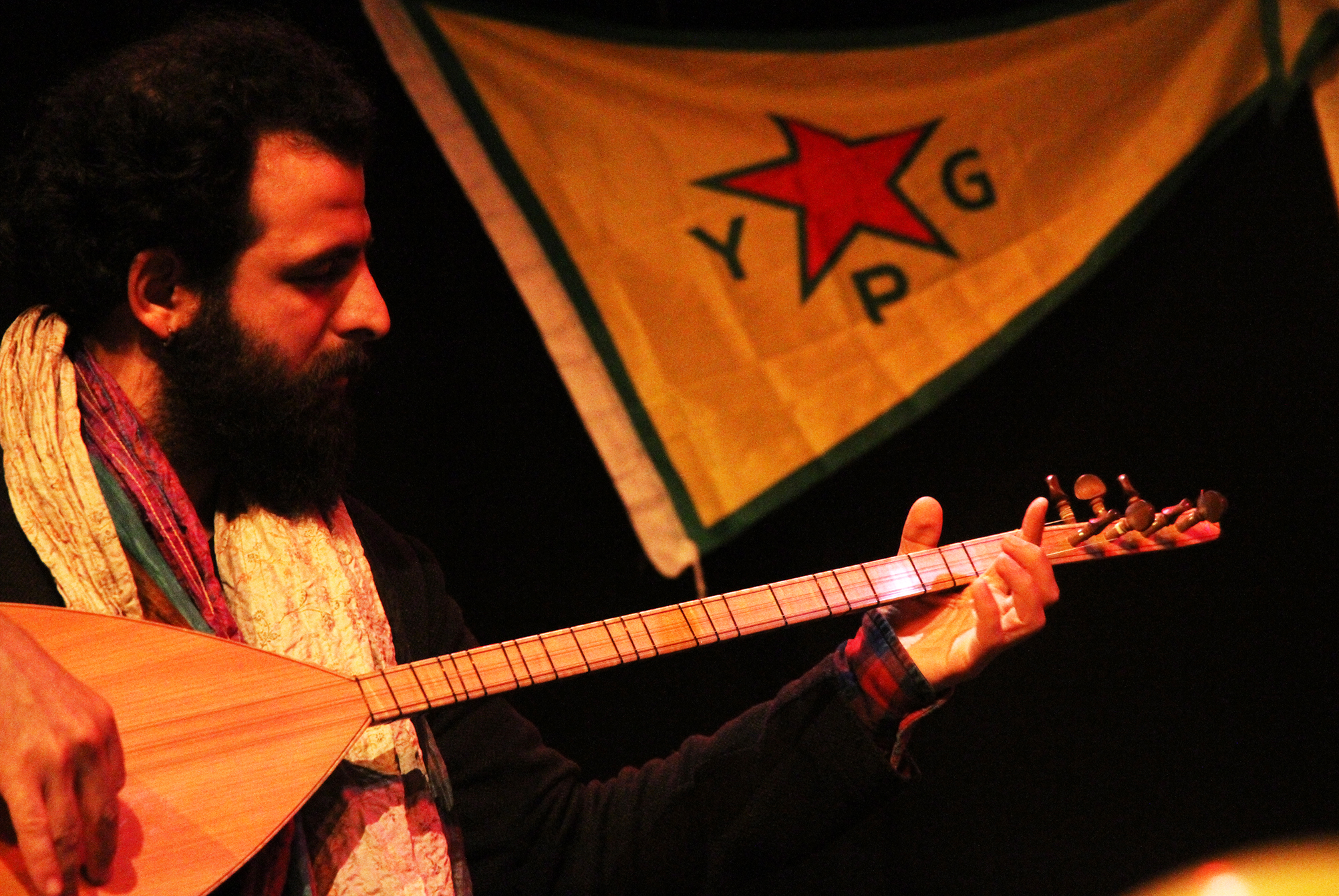 Alrededor de las cuatro de la tarde han llegado los primeros invitados que han sido bienvenidos por la actuación de la cantautora kurda Mizguin, que acompañada por guitarra y percusión a contagiado los ritmos orientales en el auditorio.