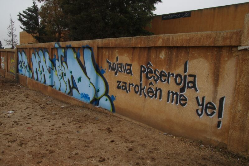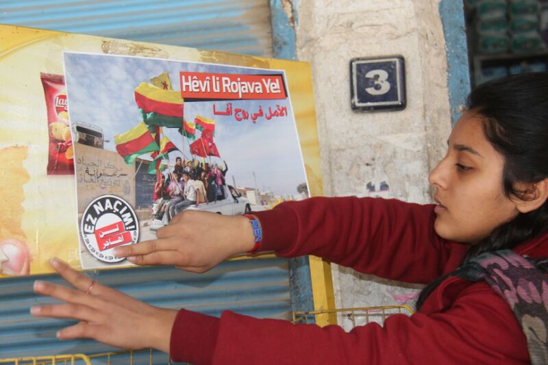 Qamishlo – Desde la Institución para la Unión y Apoyo del Pueblo (SYPG – Saziya Yekîtî û Piştgiriya Gelan), se han colgado carteles por muchos lugares, se han pintado graffitis y se han hecho fotos en el marco de la campaña iniciada contra la migración con el eslogan «Yo no me voy» («Ez naçim»).