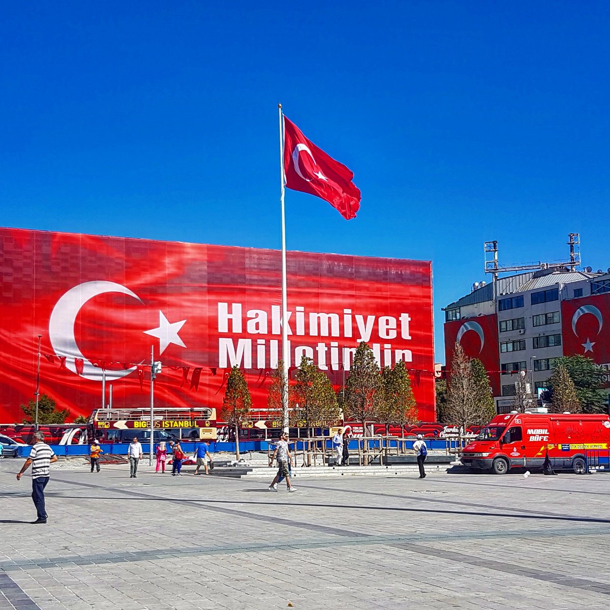 Tras el golpe de estado en Turquía se han sucedido continuas celebraciones por la victoria de la nación sobre los golpistas. El lema hakimiyet milletindir que significa “la soberanía pertenece a la nación” se ve por todas partes. Se puede leer en los carteles y pancartas en las innumerables paradas de autobús, en las farolas, pasos elevados, vallas publicitarias y en las pantallas de televisión que amenizan el transporte público. Banderas turcas de un rojo brillante adornan los coches, escaparates y los edificios públicos. Durante varias semanas, se reunían cada noche en grupos denominados “guardianes de la democracia”, interpretando marchas otomanas mientras agitaban banderas a la voz de “Dios es grande”. Incluso se escuchaba una banda sonora popular en dichos encuentros cuyo pegadizo estribillo alaba al presidente al ritmo de “Reee-ceeep Tay-yiiiip Erdogan”.