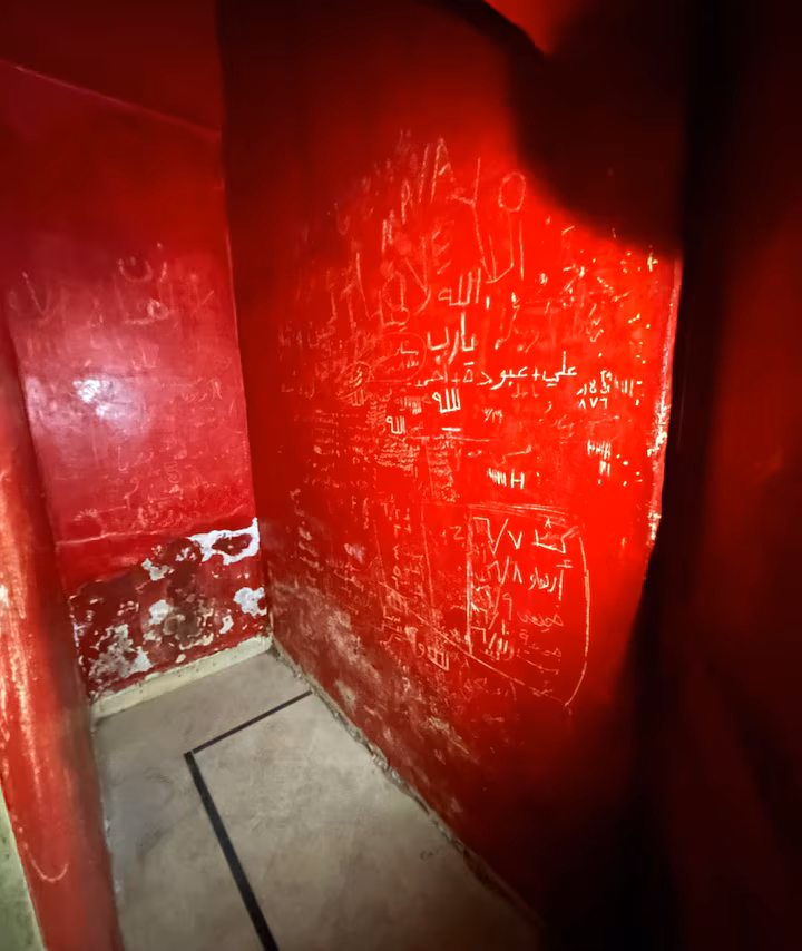 En las paredes, dijo que vio varios calendarios dibujados a mano, todos con fecha de 2025. Matar sabía por experiencia bajo el régimen de Assad cómo dejar su propia huella. Dijo que desarmó un paquete de cigarrillos, retorció el papel de aluminio hasta formar una punta y garabateó: «¡Justicia! ¡Aunque el mundo se derrumbe!».